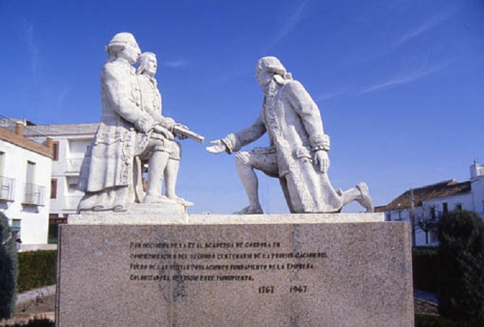 El fundador de las Nuevas Poblaciones fue el Rey Carlos III si bien nunca pasó por allí. Solo pasó por las nuevas poblaciones cordobesas en dos ocasiones, mucho antes de fundarse La Carlota y mientras aún era Infante. “Fue cuando Isabel de Farnesio, mujer de Felipe V, que sufría crisis psicóticas, decidió trasladar la corte a Sevilla, entre 1729 y 1733″, apunta Hamer. Carlos III tiene que viajar a Sevilla para posteriormente desplazarse a Parma, en Italia, pues hay que recordar que fue la madre de Carlos III quien logró que se le adjudicaran estas tierras a su hijo y se le nombrara Duque de Parma que, por cierto, se permutará posteriormente por Nápoles, llegando a ser Rey de Nápoles”. Solo durante ese viaje, Carlos III pasó por las tierras que posteriomente decidiría fundar con colonos y que son hoy Fuente Palmera, La Carlota y San Sebastián de los Ballesteros.