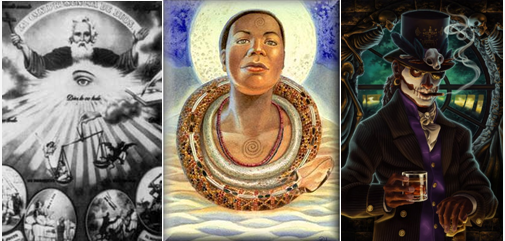 blues 2El vudú se encuentra entre las religiones más antiguas del mundo. El tráfico de esclavos hacia América produjo un fuerte fenómeno de sincretismo entre las complejas y ordenadas mitologías de las diferentes culturas africanas al verse mezcladas con las creencias cristianas o de otras religiones nativas de los lugares donde arribaron los esclavos arrancados de África. El sincretismo no es más que la unión de dos culturas o ideologías para formar una nueva. Y este fenómeno se da cuando dos sistemas religiosos, con todas sus creencias, costumbres, ritos, formas de organización y normas éticas respectivas se unen para formar un sistema nuevo.