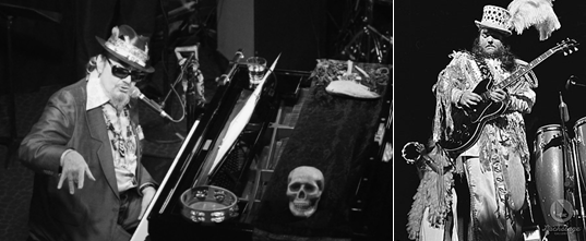 Uno de los primeros artistas en introducir el concepto de vudú en la música popular fue el incomparable Screaming Jay Hawkins, pionero del rock teatral y maestro de Alice Cooper y Marylin Manson, que combinaba su voz sopranesca con espectáculos impactantes y macabros; ataúdes, calaveras, enormes serpientes y referencias al vudú.